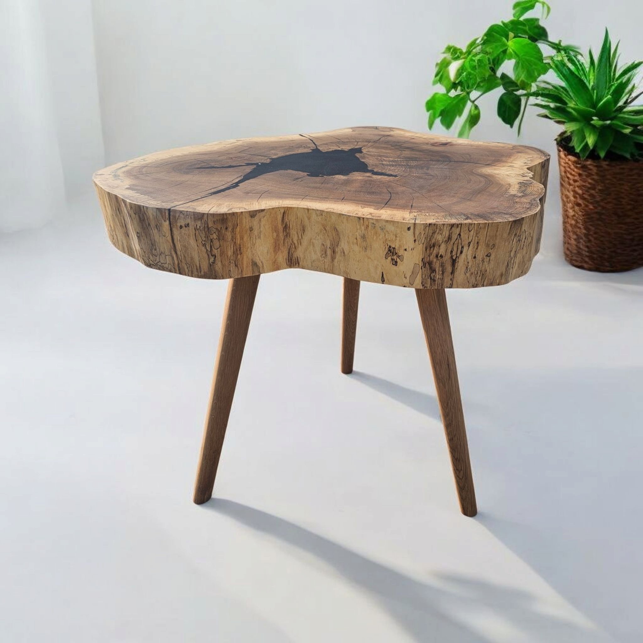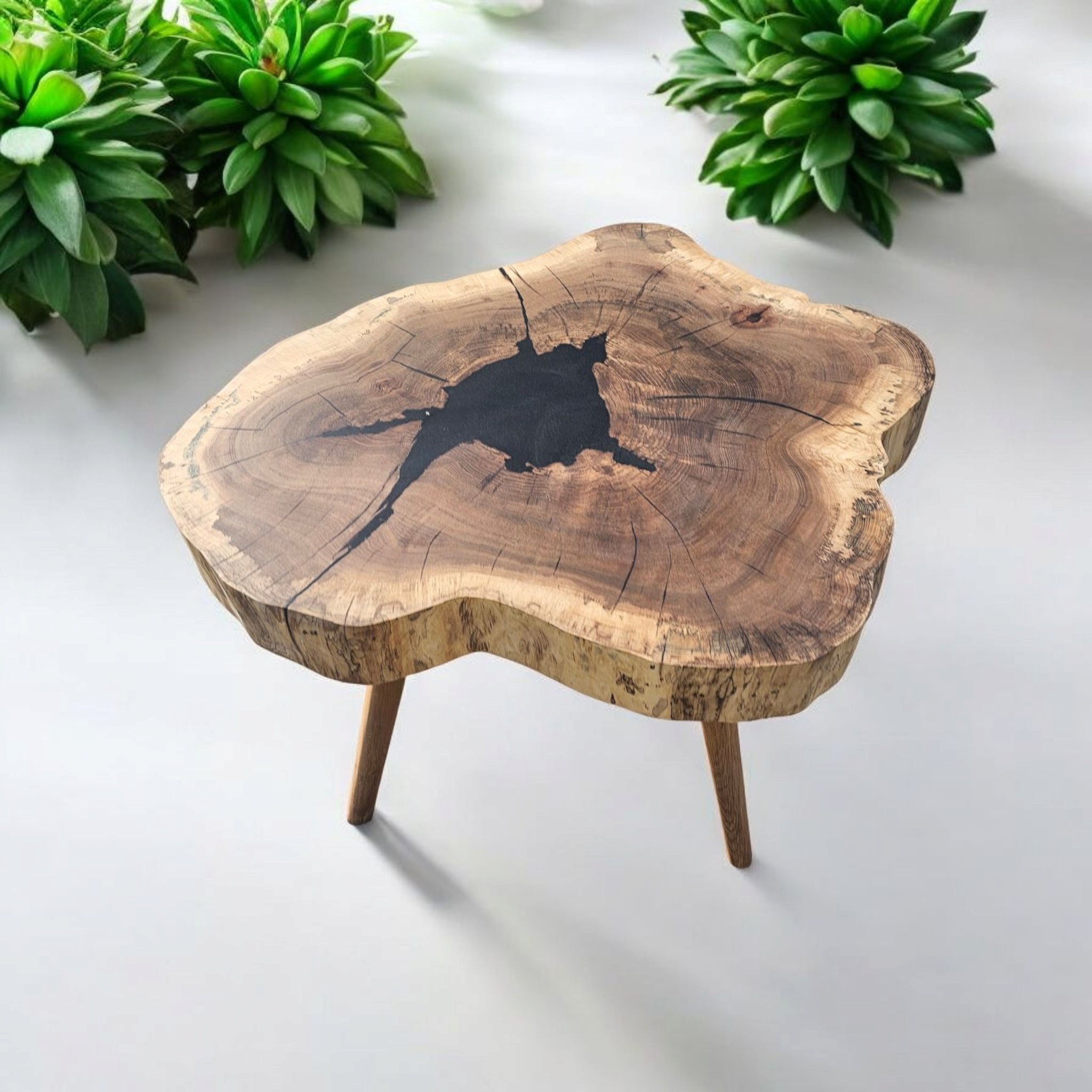 Măsuță de cafea din lemn de ulm cu rășină epoxidică – blat natural, picioare din stejar, 50×60 cm